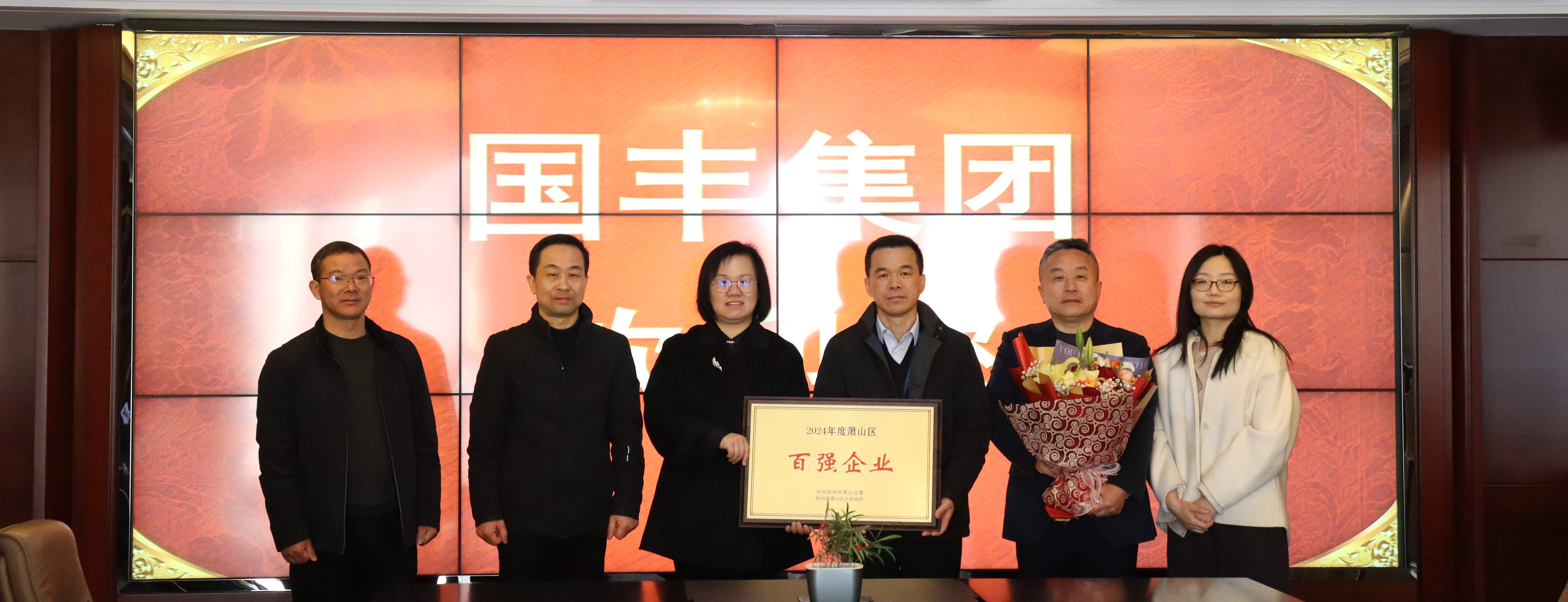 區(qū)住建局領(lǐng)導(dǎo)走訪國(guó)豐集團(tuán) 頒發(fā)“蕭山區(qū)百?gòu)?qiáng)企業(yè)”獎(jiǎng)牌